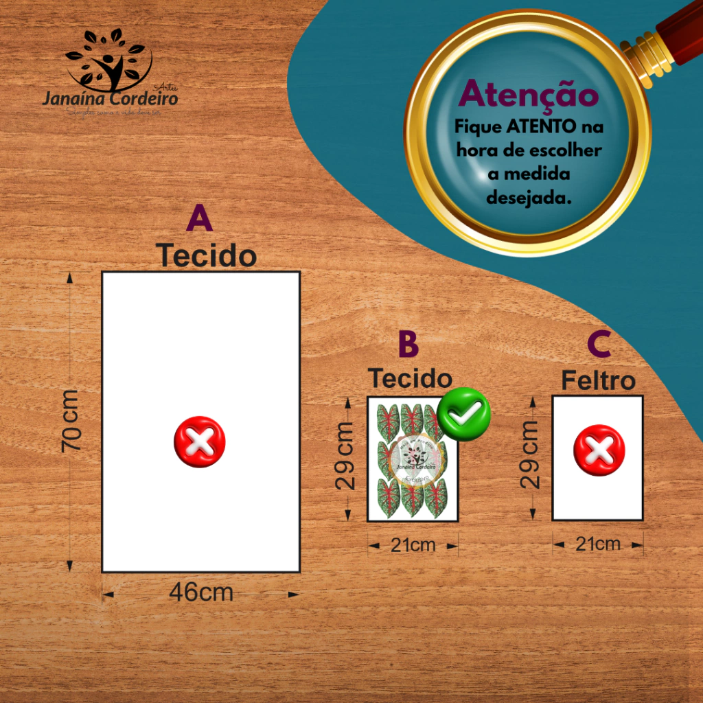 Opção B: Tecido medida - 29cm x 21cm